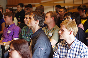 The event ended with a poster presentation where students, faculty and industry members mixed over hors d'oeuvres and discussed research, goals and career paths. Graduate Students teamed up with industry members from the Puget Sound area to judge posters and network. The incoming graduate class had the opportunity to see the research being done in the department for the first time. If you missed this year’s symposium, mark your calendars: the Graduate Student Symposium will be back on September 22, 2016!
